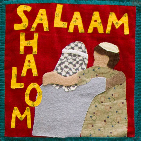 This piece is based on a photograph I saw a number of years ago in a magazine I was reading on a plane. I was so impressed I sketched it, and for years that tiny sketch lay around my room until it found its way into the Peace Quilt.
