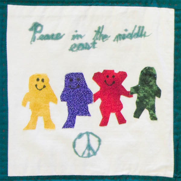 To the third through sixth grade classes of Agudus Achim Religious School, under the direction of Rabbi Tracy Klirs, the meaning of "Middle East Peace Quilt" is simple. We teach "Mitzvot" each month; this month our "Mitzvot" is "Rodef Shalom" (to pursue the peace). We teach that the pursuit of peace is one of the most God-like things we can do. Peace doesn't just happen. We need to seek out peace and make it happen. Discussing and contributing to the Middle East Peace Quilt for this lesson plan was a great way for the children to think of the peace process in the MIddle East, and a wholeness in the world.