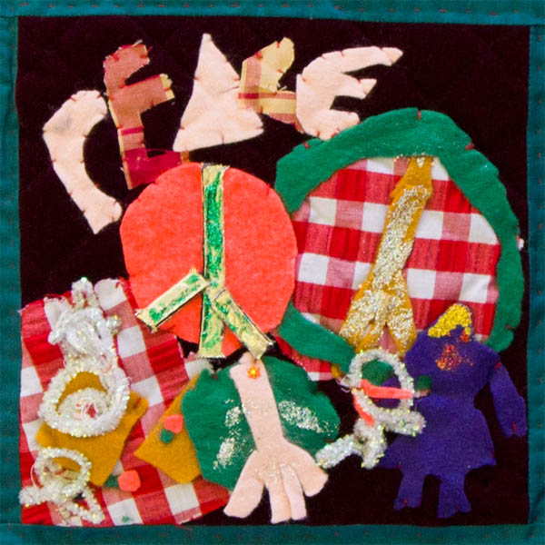This square was constructed by a group of seven artists between the ages of five and eight. Over the course of two half hour sessions, Jessica Wong, Shane McCraken, Emma Chorostecki, Caroline Spaner, Kate Maklan, Russell Staughton and Zachary Rota, all members of the Morris Winchevsky Community Shule, were asked what peace in the Middle East means to them. The first day they spent brainstorming and sketching their ideas which were comprised of visual symbols used to represent peace. The second session was spent realizing their ideas. Their choices were to illustrate the universal symbol of peace which speaks to all nationalities, depict individuals living side by side amicably, people eating and sharing their space together, and simply but powerfully writing the word "peace". This square speaks for itself. Through the voice of children, it openly celebrates peace between all peoples and defies discrimination based on race or religion.