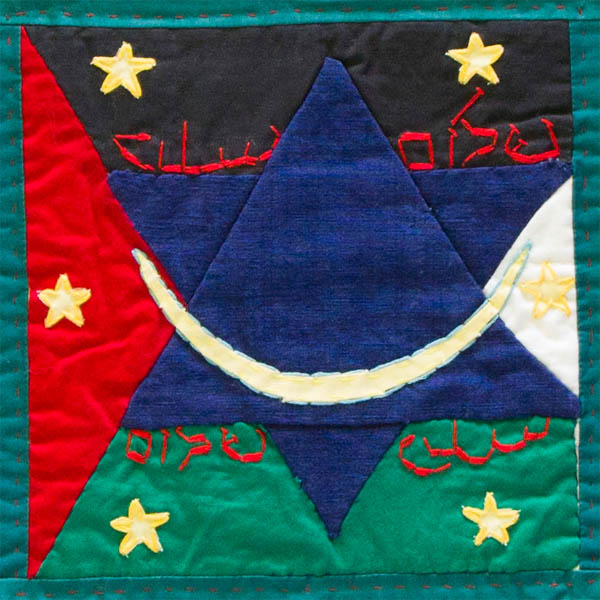 Last summer, I was at World Fellowship, which is a progressive resort in New Hampshire. The theme of the week was The Middle East, and I began thinking, what if MY dream of Israel could be accomplished: a democratic multicultural secular state in which all beliefs, including secularism, were respected, and in which social and economic conditions were created to enable people of all flavours of Jewish and Islamic background to heal wounds and live in harmony. What would their flag look like?