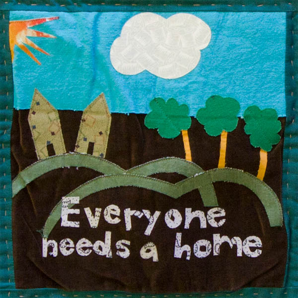 My quilt piece is inspired by home demolitions in the West Bank. But I wanted to portray a positive rather than a negative image.
