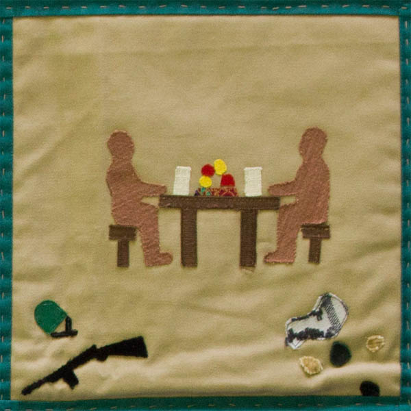 Coffee break on the road to peace: without weapons and headgear they look identical.