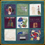 The Middle East Peace Quilt is an international community art project made by over 300 people ranging in age from 5 to 85, including men and women, Jews and Palestinians and professional artists as well as people new to artistic expression. Each square is accompanied by the words of the people who made it. Click on any image to see a larger version of that panel and then on any individual square to see it in detail and read its accompanying statement. All the work on this site is available for travel. Please get in touch if you want to arrange an exhibit.